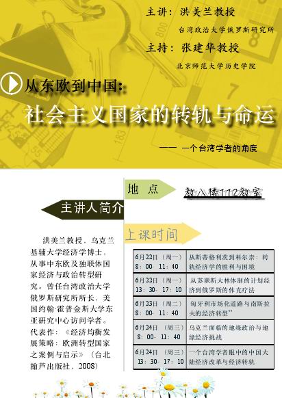 讲题:从东欧到中国:社会主义国家的转轨与命运