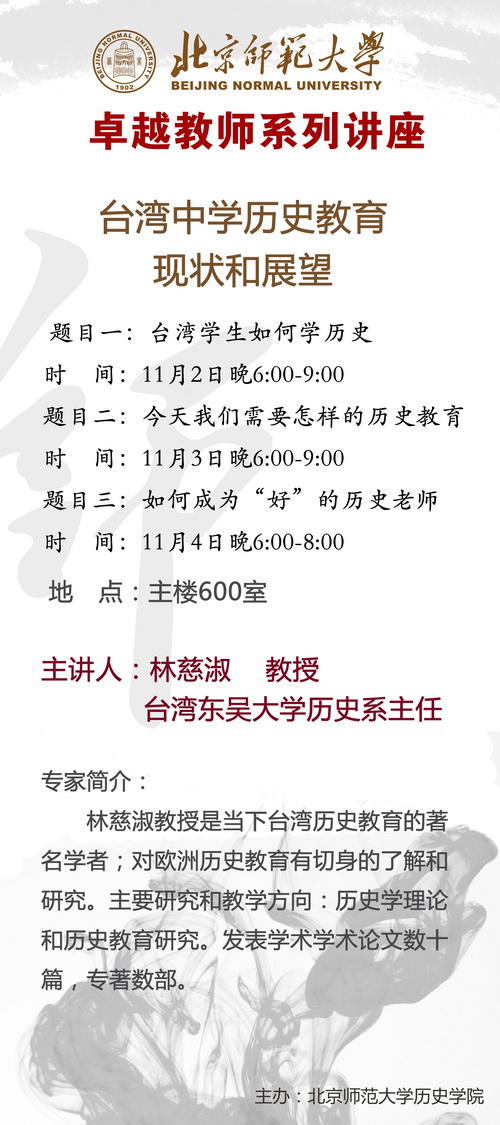 【教育名师讲堂】林慈淑:台湾中学历史教育的现状和展望