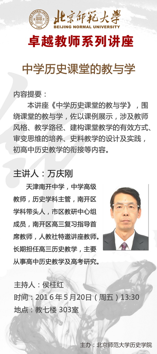 【教育名师讲堂】 万庆刚:中学历史课堂的教与学