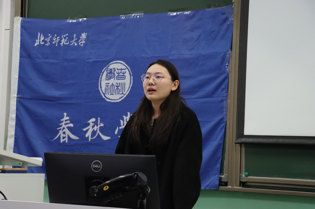 最后,社长江怡慧同学进行了发言。她回顾了自己三年来在学社的成长与收获,从最初怀着对历史学的热爱加入学社,到通过积极参与各类学术活动不断提升专业能力、深化学术兴趣。在这段难忘的旅程中,她特别感恩学社这个充满历史底蕴和人文温度的大家庭给予的滋养,希望大家在社团工作中始终怀抱对历史学的热忱,传承学社友爱互助的精神,共同书写春秋学社更精彩的明天。