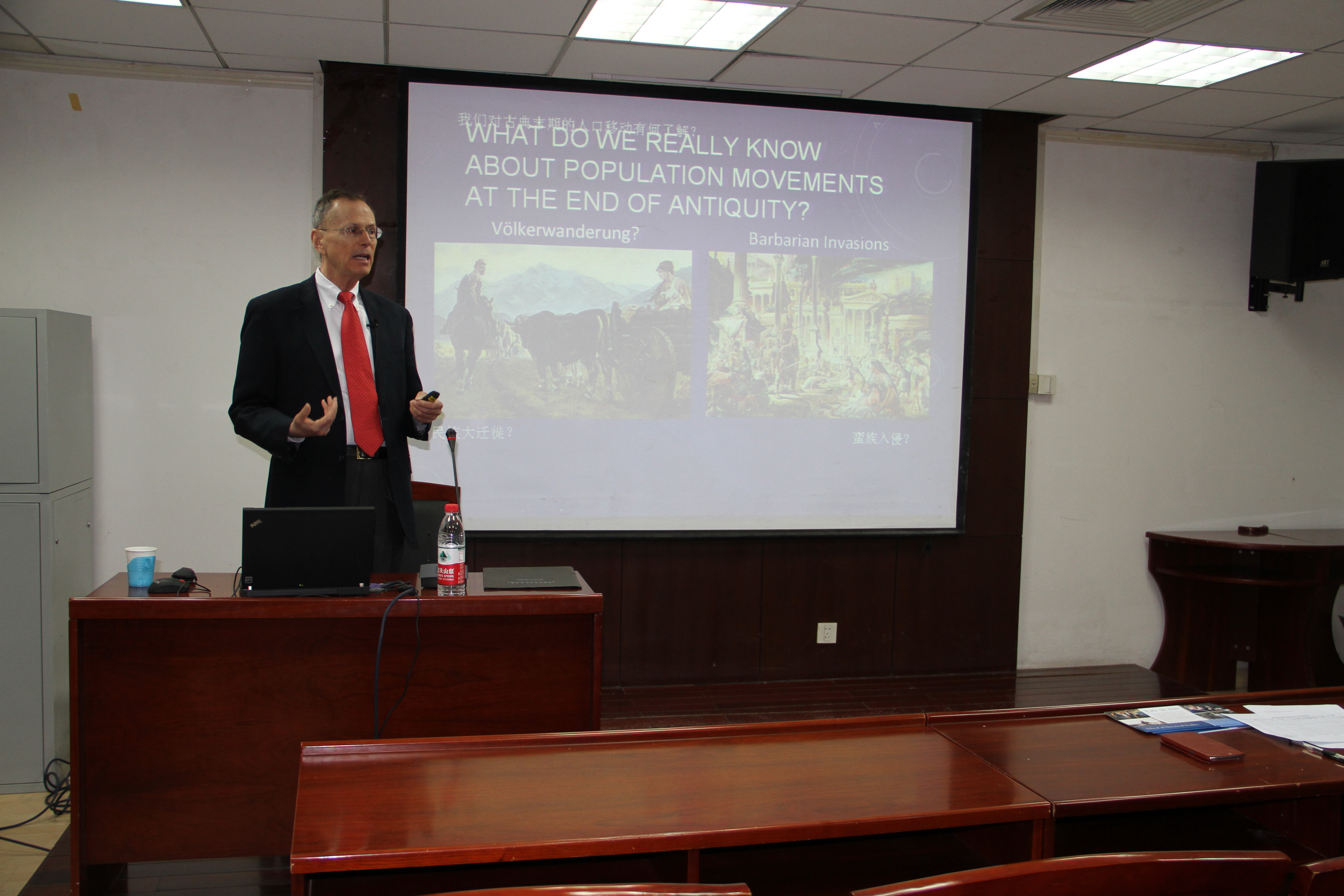 应新葡萄8883官网AMG世界古代史教研室刘林海教授邀请,美国普林斯顿高等研究院历史学教授帕特里克·J.盖瑞(Patrick J. Geary)先生于2016年4月12日在主楼600会议室作学术讲座,题目为《由基因史评估蛮族迁徙:问题与可能》。世界古代教研室侯树栋教授、刘林海教授等老师及学生50余人聆听了讲座。