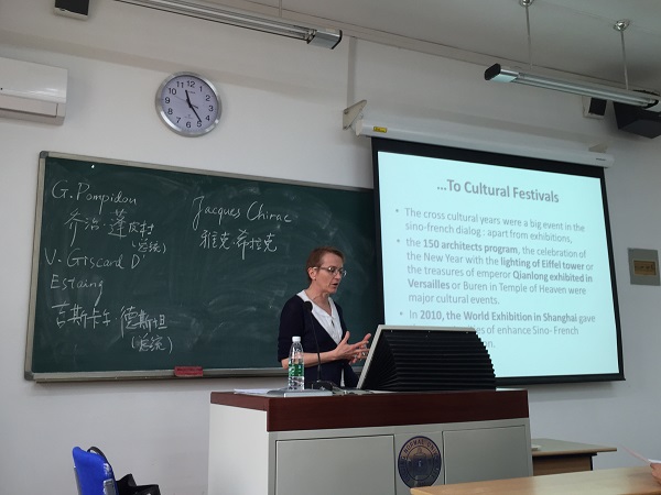第二部分为讲座的核心内容,着重讲述了20世纪五、六十年代中法文化交流与政治交往。新中国成立之初,尽管法国政府尚未承认社会主义政权,但派遣代表团来华访问交流,并因此推出了一些积极描述新中国的作品,如西蒙娜•德•波伏娃撰写的《长征》(La longue marche, 1957)。此外,马克•吕布(Marc Riboud)与亨利•卡蒂埃-布列松(Henri Cartier-Bresson)等人的摄影作品见证了上海的共产主义革命,提供了关于中国的难以磨灭的影像。与此同时,少数法国学生来华留学,其中包括日后成为著名汉学家的玛利亚娜•巴斯蒂(Marianne Bastid)、米歇尔•卡蒂埃(Michel Cartier)和雅克•班巴诺(Jacques Pimpaneau)。在第三部分中,柯蓉教授从中法文化关系谈到了当下的高科技合作。她认为中法两国的对话在很大程度上基于文化关系,而文化服务于外交,同时也对经济、政治产生影响。进入21世纪以来,中国在新的世界秩序中扮演着越来越重要的角色,在此背景下,法国试图巩固与中国的特殊关系,2003-2005年的“中法文化年”和2011-2013年的“中法语言年”系列活动即体现了这一努力。高科技领域的合作也是当下中法关系的重要基础。比如,2007年法国国立民航大学与中国民航大学(天津)合作创办了中欧航空工程师学院;2010年中山大学与法国合作创立了中法核工程与技术学院。最后,教授指出中法两国长期保持文化上的密切交流,二者之间的合作是深入的、可持续的。尽管当中国企业主购买法国公司时,在法国经济领域再度出现中国威胁论的神话,但是相信通过持续的深入对话可以化解偏见、加强合作。