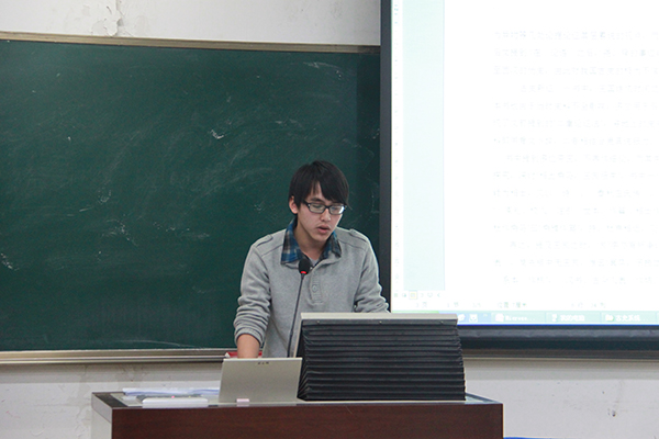 2014年12月23日,春秋学社本学期读书沙龙研讨会暨成果展示会在教二109教室顺利举行。此次会议围绕中国上古史“古史系统”进行探研,并有幸邀请到了我院李锐老师为此次报告作学术报告。会议由副社长宣柳主持。春秋学社成员及新葡萄8883官网AMG的部分同学参加此次会议。