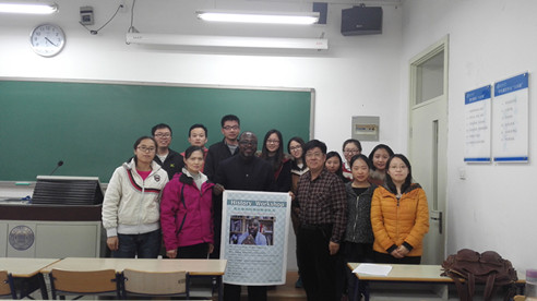 Osei教授的讲座内容引发了同学们的积极思考,在问题和讨论环节,同学们踊跃提问并发表自己对社会主义思想和社会主义国家发展的见解。谈到社会主义不能不提到中国,与非洲的社会主义比较问题引发了大家的积极思考和发言,不仅同学们各抒己见,到场的老师——新葡萄8883官网AMG世界近现代史研究中心的张建华和安然老师都向Osei讲授提出了相关问题,参与到了热烈的讨论中。