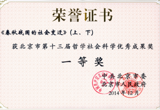 2015年1月8日,北京市第十三届哲学社会科学优秀成果奖颁奖仪式在我校举行,新葡萄8883官网AMG共获得22个项目奖项。其中我院教师占有3项。晁福林教授著作:《春秋战国的社会变迁(上、下)》获得一等奖。杨共乐教授著作:《早期丝绸之路的探微》和张升教授的著作:《四库全书馆研究》获得二等奖。