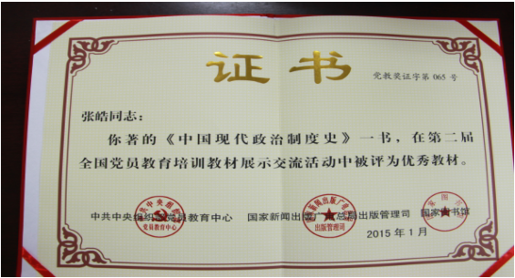 我院张皓教授所著《中国现代政治制度史》获奖